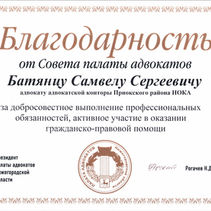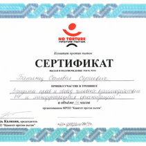 Состою в Палате Адвокатов Нижегородской области. Участник Нижегородского регионального отделения ассоциации юристов Российской Федерации.